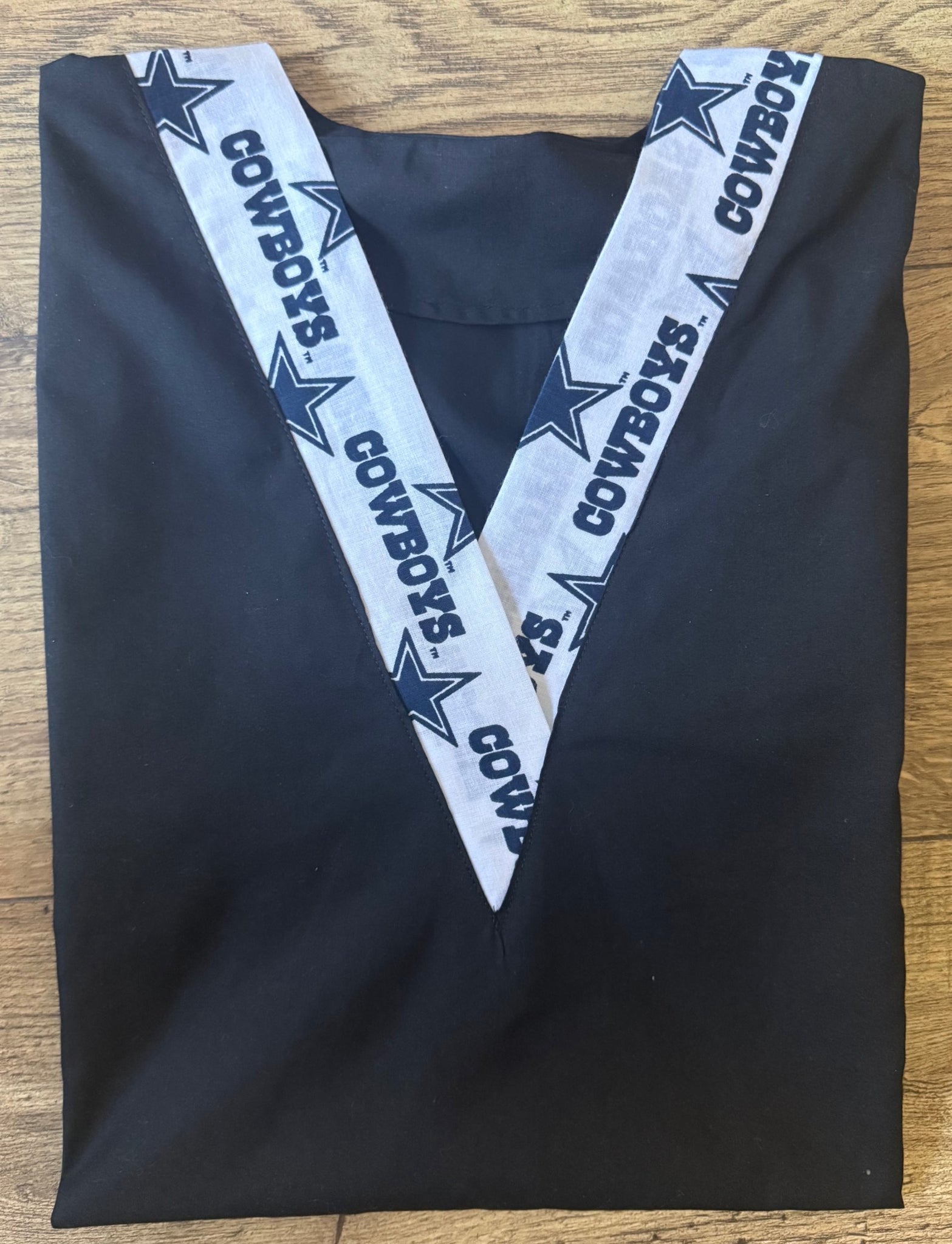 Solid Black Scrub Top with Cowboys Football Black Fabric on *Neck Band & Pocket Options* Medical Scrub Top Unisex Men & Women